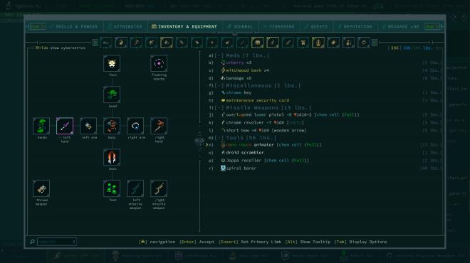 - Dozens of cybernetic implants (and more to find as treasure) — night vision, translucent skin, carbide fists, spring-loaded ankle tendons…